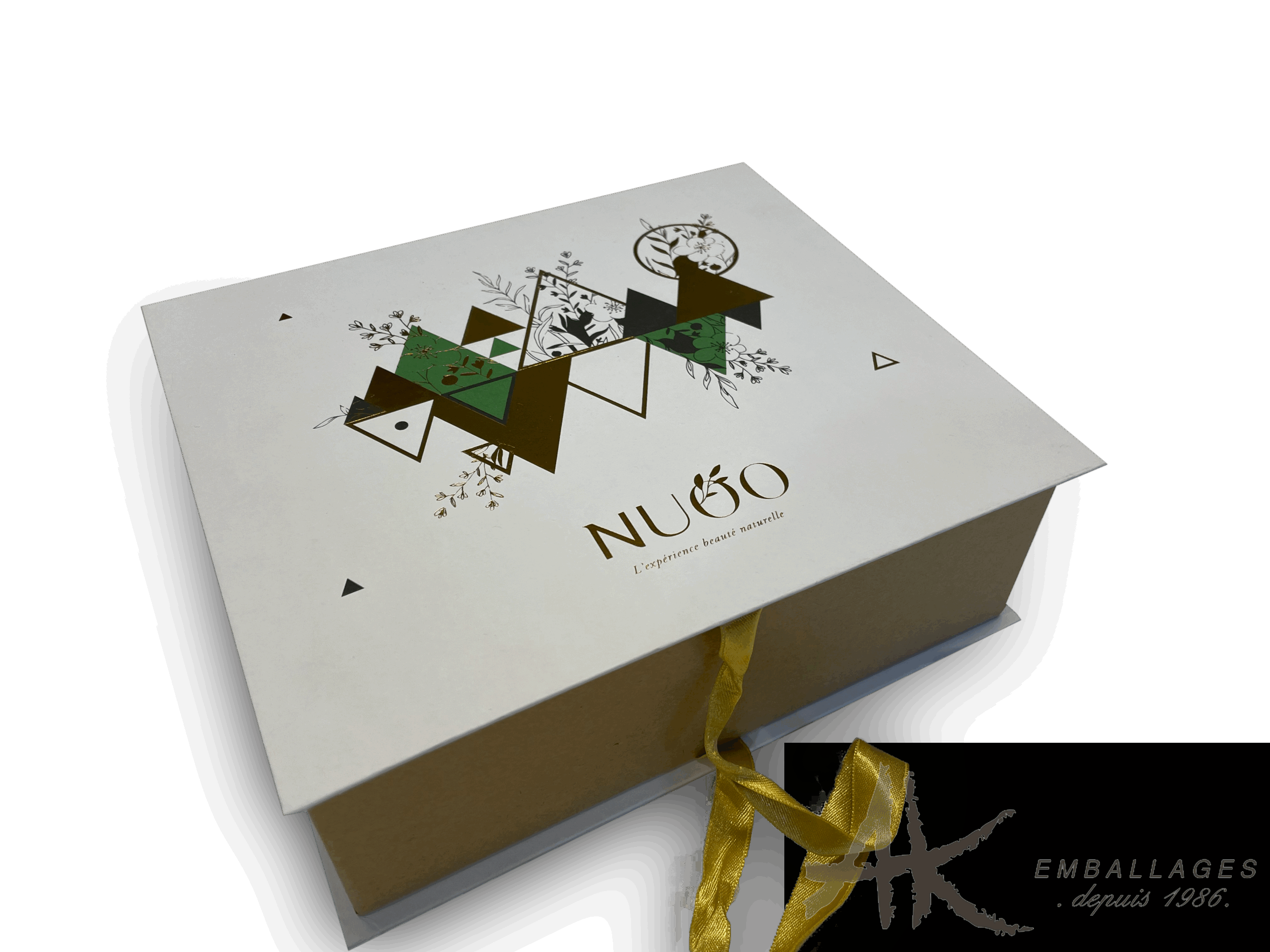 Chez AK Emballages, nous concevons des emballages premium qui allient esthétisme, innovation et durabilité. Parmi nos créations les plus demandées figure la boîte à rabat avec fermeture ruban, une solution d’emballage qui associe raffinement, praticité et personnalisation. Ce type de boîte séduit particulièrement les secteurs du luxe, de la joaillerie, de la cosmétique et des vins et spiritueux, mais il trouve également sa place dans l’univers de la gastronomie et des cadeaux d’entreprise.